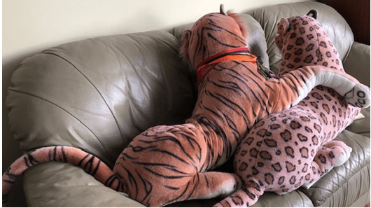 My husband rarely projects his emotions. He’s even-keeled, rarely flustered, and raises his voice only to cheer for his favourite powerlifters. But when it comes to the tiger-leopard combo, he loses all sense of decorum. He grew up in the former Soviet Union where his family had no access to children’s toys, and especially stuffed animals—these appeared in the orbit of the happy few. He grew up with a few trucks and a single plush poodle whose polyester curls were so rough to the touch that the beast remained purely decorative. Once he started earning a decent living in Toronto as a computer programmer, he began amassing a collection of stuffed animals. The larger the better. The tiger commemorated his birth year according to Chinese zodiac, and later a leopard was acquired to keep him company.
