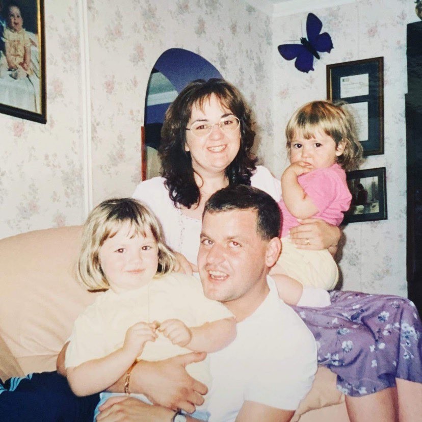 Left: My dad, my mum, my older sister (left) and me (right). Right: from left to right, my younger sister, my older sister, me, my mum, and my dad.