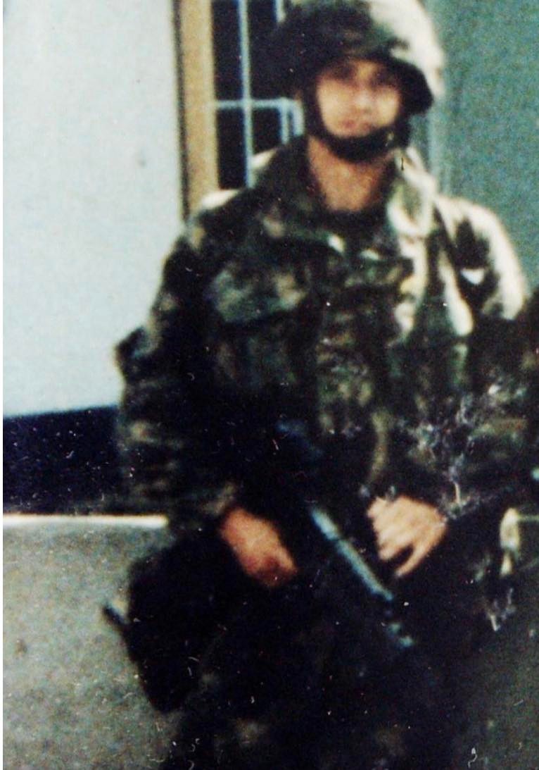 Joining the army was always a no-brainer for my dad: ‘Since I was eight years old, I wanted to join the army. Growing up, my father was in the army so that was all I knew. It was instinctive for me. I grew up in Wiltshire, so we always had army helicopters flying over and we had army trucks driving through the village. We had loads of army bases a stone’s throw from where we lived, so the whole environment was geared towards the military. You could say I’d been conditioned to that way of life, it was how I was brought up’. And as soon as he joined, he knew it was the life for him: ‘Being in the army was great – I didn’t grow up, it was like I was still a kid. We had a very close-knit team, you trust them, they’re your best mates, your life is in their hands and their lives are in yours. I also loved the environment of Northern Ireland, I felt I was born into it, I couldn’t picture myself anywhere else, I was a very young man, younger than you, I thought it was great.’