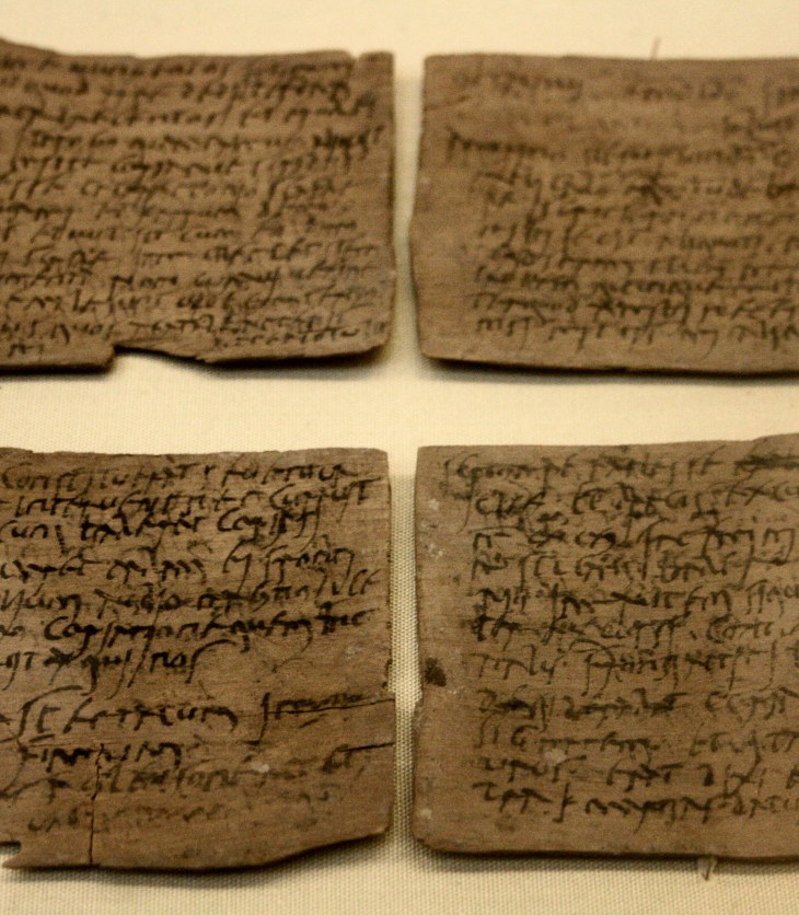 The Vindolanda tablets are a set of writing tablets, dating from the late 1st to early 2nd centuries AD and unearthed in northern England in the 1970s. They form a remarkable cache of correspondence received by the garrison of the Roman fort of Vindolanda, close to what would become Hadrian’s Wall. They are made of wood shavings, written on with pen and ink. (It is worth reminding ourselves that, whilst the pen and paper of today are starting to be seen as old fashioned, other methods of letter writing have also fallen by the wayside.) Over 1600 have been found over the decades since the first discovery. Together, they are among the oldest letters in British history.